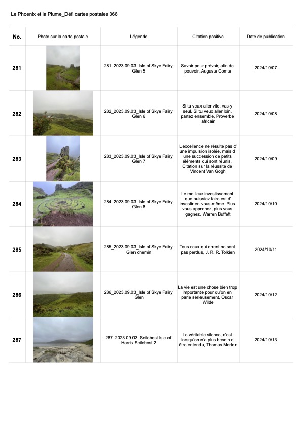 Les cartes postales Toutes les images qui se trouvent au recto des cartes postales de mon défi ont été réalisées grâce aux photographies prises lors de mes promenades et de mes voyages. Ces images me servent aussi de photolangage lors de mes prestations et ateliers. Similaire